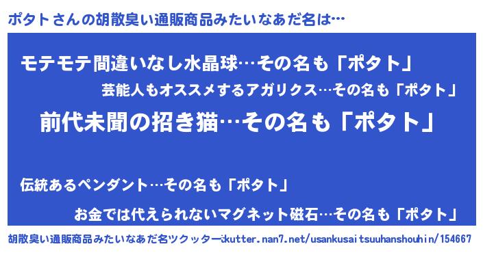 | 意味不明あだ名 | 『永久保存ポタト』『ペロリンポタト』 |