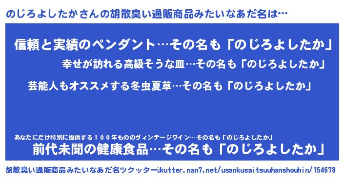 | 意味不明あだ名 | 『自称のじろよしたか』 |