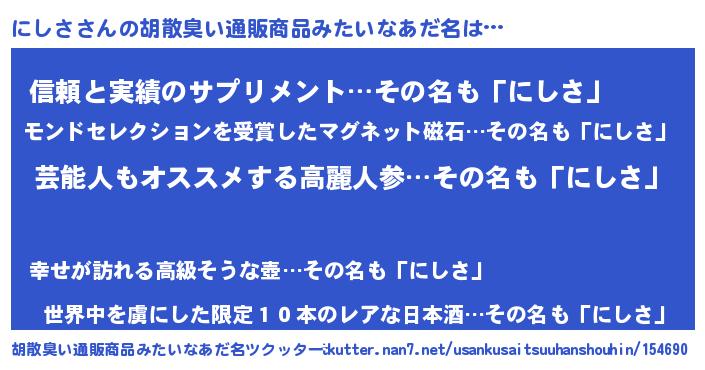 | ポケモン風あだ名 | 『ニシセウス』『ヒニシサ』 |