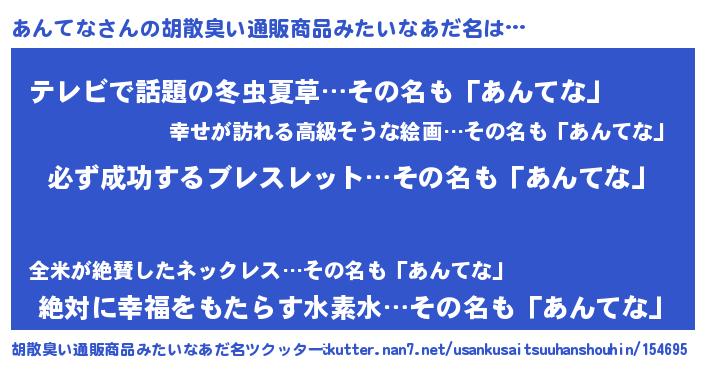 | ポケモン風あだ名 | 『アンキング』『アンチュウ』 |