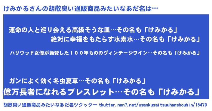 | 意味不明あだ名 | 『住所不定無職けみかる(11歳)』 |
