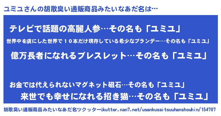 ユミユさんの胡散臭い通販商品みたいなあだ名をツクッター!