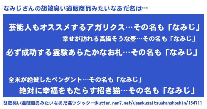 | 意味不明あだ名 | 『ペロリンなみじ』『自称なみじ』 |