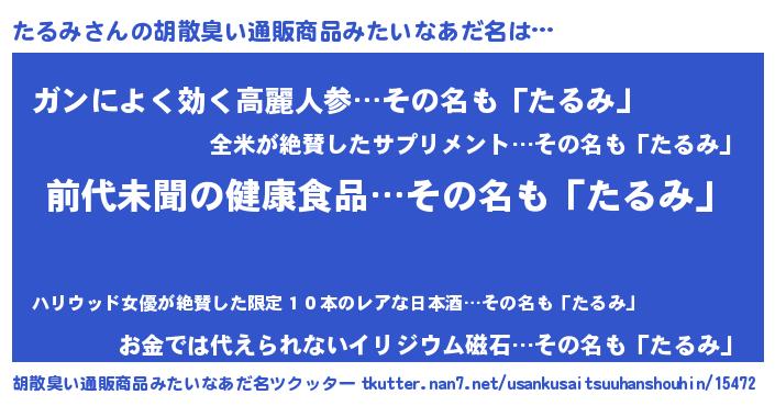 | ヘコむあだ名 | 『たるみ(爆)』『たるお』『なまこ酢』 |
