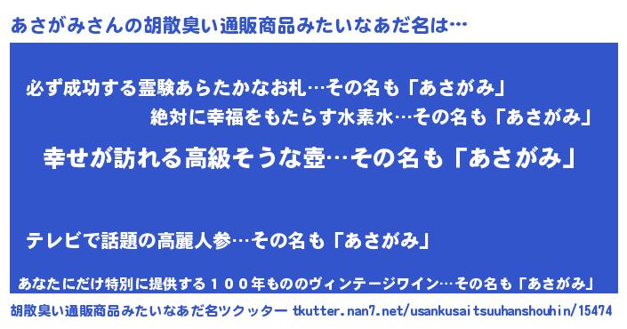 | 恥ずかしいあだ名 | 『あさっちょ』『プリティーあさがみ』 |