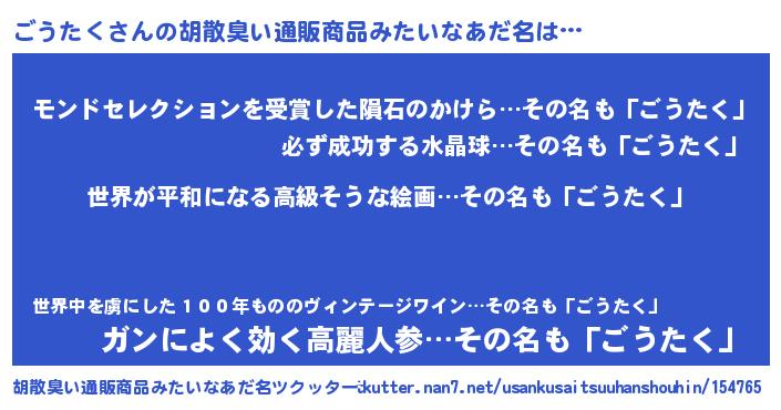 | ヘコむあだ名 | 『なまこ酢』『ごうにー』『ごうっぺ』 |