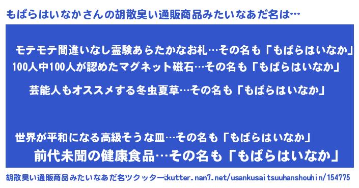| 意味不明あだ名 | 『自称もばらはいなか』 |