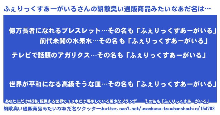 | 意味不明あだ名 | 『自称ふぇりっくすあーがいる』 |