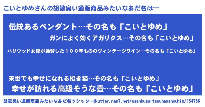 | 意味不明あだ名 | 『住所不定無職こいとゆめ(13歳)』 |