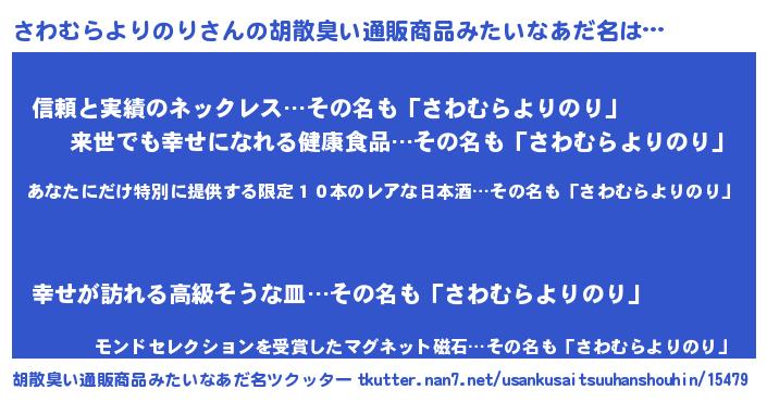 | 男性向けラノベタイトル風あだ名 | 『この素晴らしい世界にさわむらよりのりを!』 |