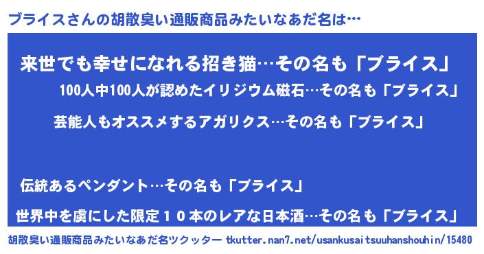 | ヘコむあだ名 | 『ブライス(笑)』『ブラお』『豆乳』 |
