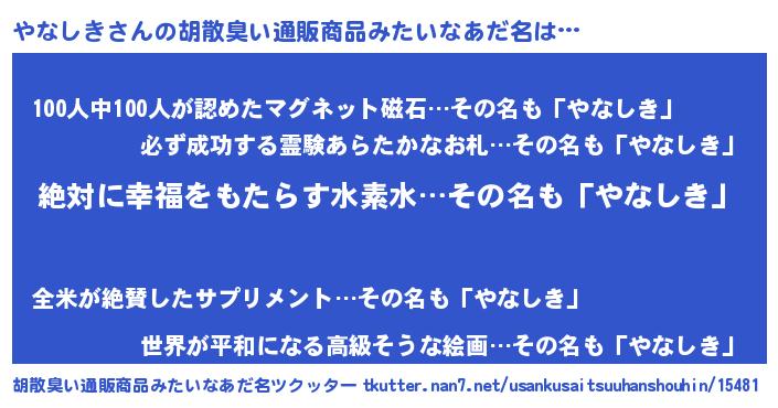 | 男性向けラノベタイトル風あだ名 | 『やなしきという概念が存在しない退屈な世界 』 |