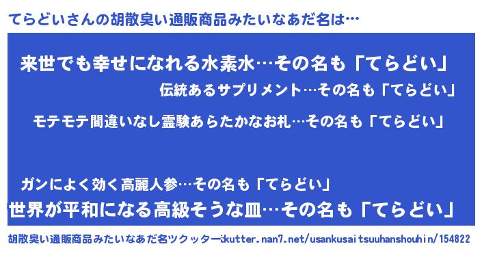 てらどいさんの胡散臭い通販商品みたいなあだ名をツクッター!