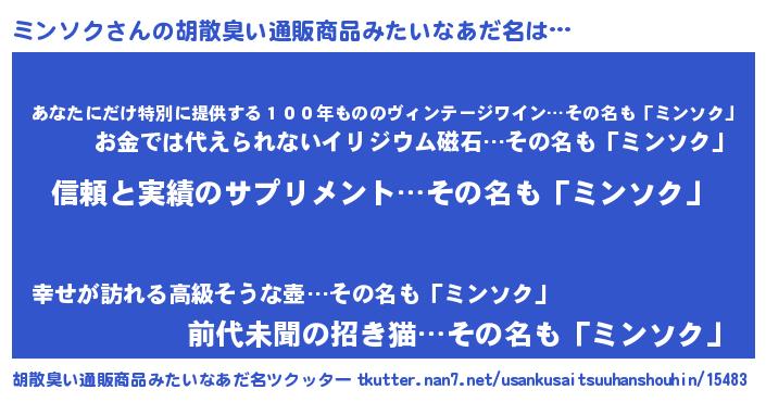 | ヘコむあだ名 | 『ミンお』『ミンソク(小並感)』 |
