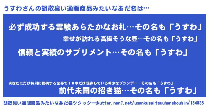 | 女子向けラノベタイトル風あだ名 | 『うすわは平凡を望む』 |