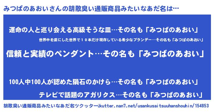 | 男性向けラノベタイトル風あだ名 | 『ダンジョンにみつばのあおいを求めるのは間違っているだろうか』 |