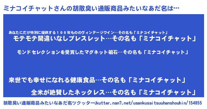 | 伝説のあだ名 | 『救世主となる技術者ミナコイチャット』 |
