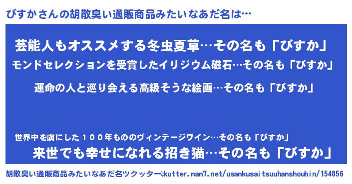 | ヘコむあだ名 | 『酢こんぶ』『びすか(爆)』『びすお』 |