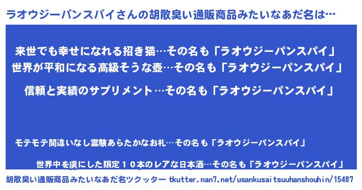 | 欧米人風あだ名 | 『ウサインラオウジーパンスパイ』 |
