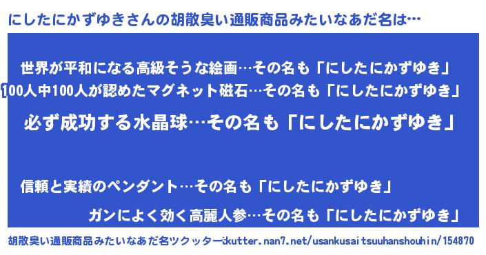 | ヘコむあだ名 | 『にしにゅー』『豆乳』『にし太郎』 |