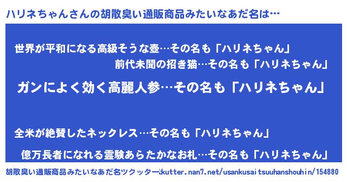 | ヘコむあだ名 | 『牛乳』『ハリふぇ~』『ハリを』 |