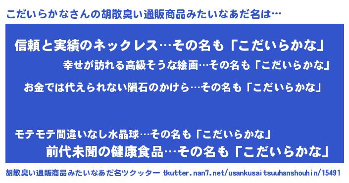 | ヒーロー風カッコイイあだ名 | 『慈愛の使者こだいらかな』 |