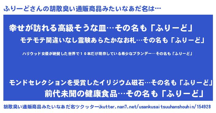 | 料理風あだ名 | 『ふりーどのカルパッチョ風』 |