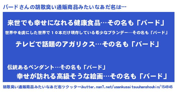 | 意味不明あだ名 | 『自称バード』『永久保存バード』 |