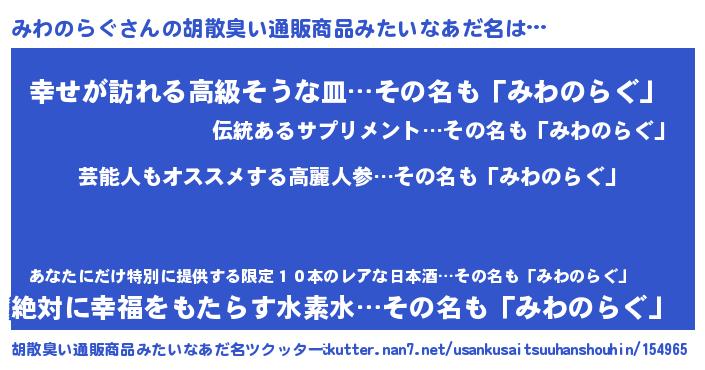 | 意味不明あだ名 | 『自称みわのらぐ』『永久保存みわのらぐ』 |