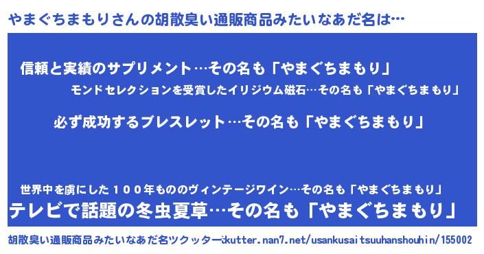 | 男性向けラノベタイトル風あだ名 | 『やまぐちまもりの憂鬱』 |