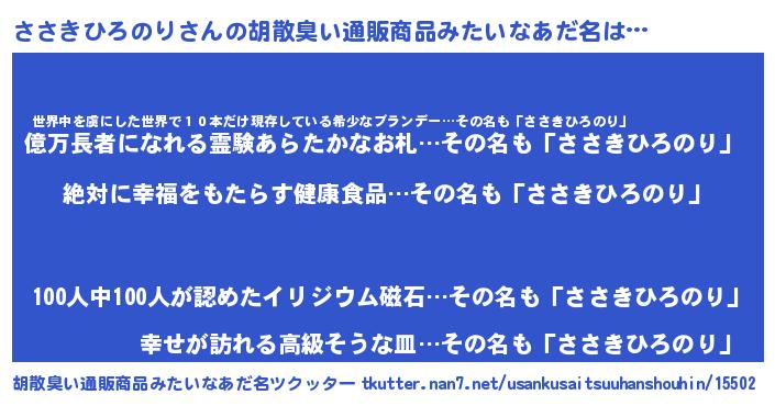 | ヒーロー風カッコイイあだ名 | 『ネオササキヒロノリ』『仮面ササダー』 |