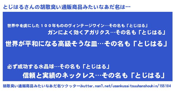| 意味不明あだ名 | 『とじはるフォーエバー』『自称とじはる』 |