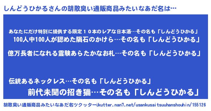 | 意味不明あだ名 | 『ペロリンしんどうひかる』 |