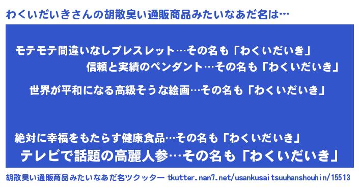 | 欧米人風あだ名 | 『トリンドルわくいだいき』 |