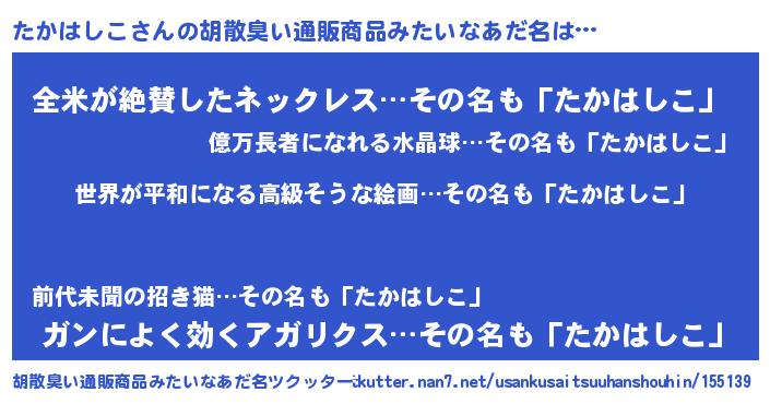 | 肩書あだ名 | 『たかはしこ総理大臣』『たかはしこ塾長』 |