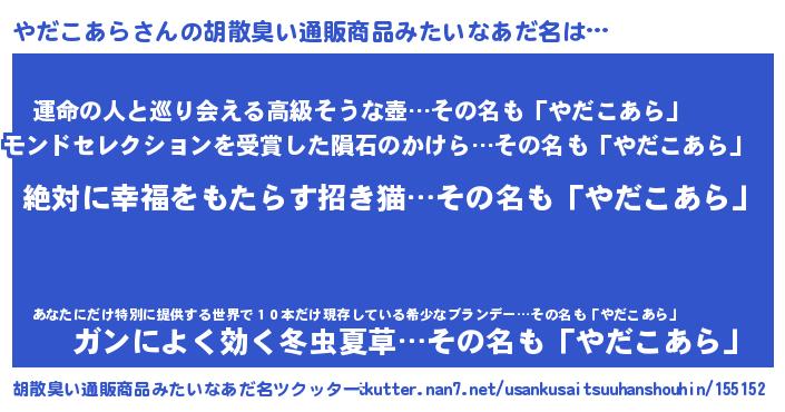 | ヘコむあだ名 | 『やだこあら(小並感)』『豆乳』 |