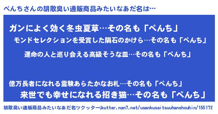 | 意味不明あだ名 | 『ぺんちフォーエバー』『自称ぺんち』 |