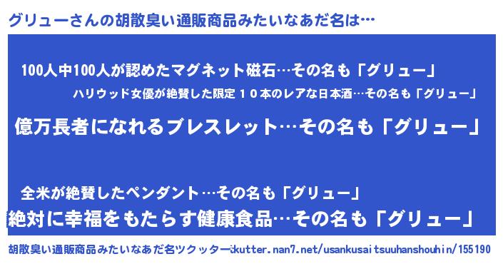 | 意味不明あだ名 | 『ペロリングリュー』『永久保存グリュー』 |