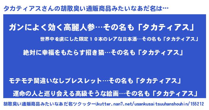| 意味不明あだ名 | 『永久保存タカティアス』 |