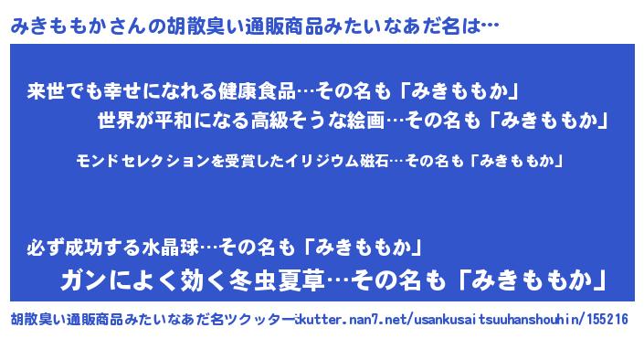 | 意味不明あだ名 | 『眠気覚ましガムみきももか味』 |