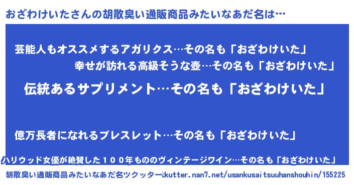 | ヘコむあだ名 | 『おざを』『レバニラ』『おざにー』 |