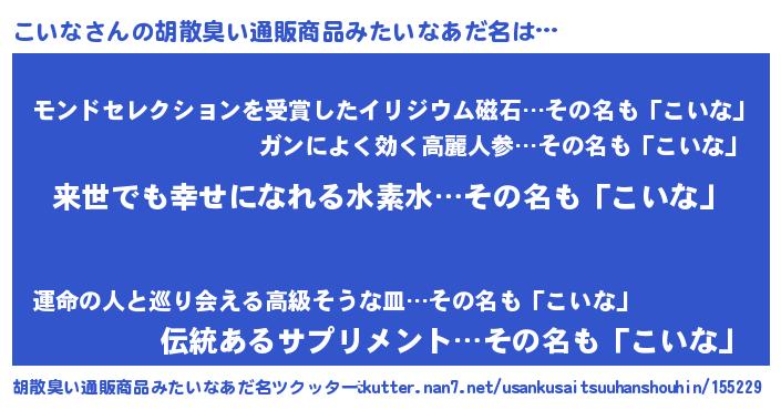 | 意味不明あだ名 | 『永久保存こいな』『ニラ科こいな属』 |