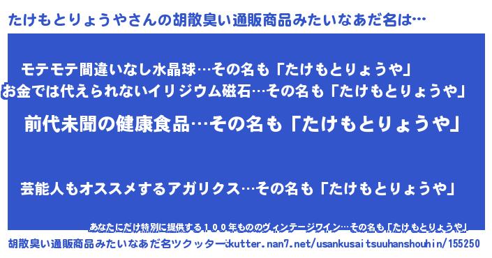 | 意味不明あだ名 | 『永久保存たけもとりょうや』 |