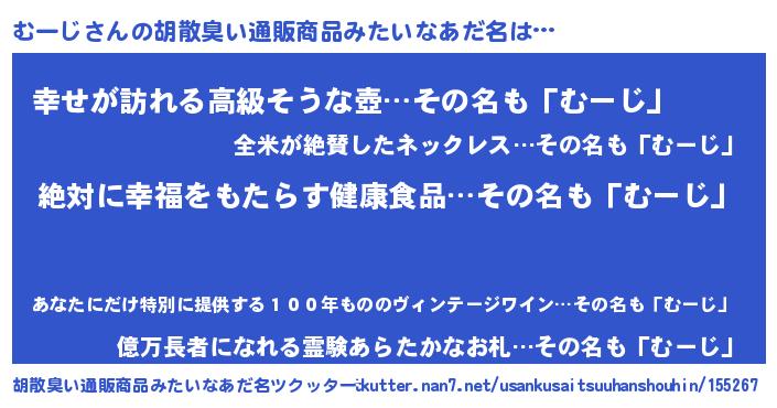 | ヘコむあだ名 | 『むーじ(爆)』『つくし』『むーっ子』 |