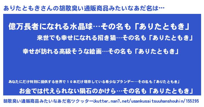 | 恥ずかしいあだ名 | 『ありっちょ』『プリティーありたともき』 |