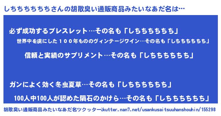 | 意味不明あだ名 | 『とにかく怪しいしちちちちちち』 |