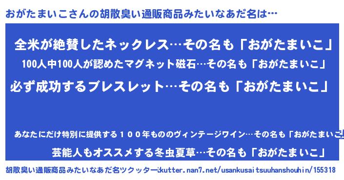 | 欧米人風あだ名 | 『マイケルおがたまいこ』 |