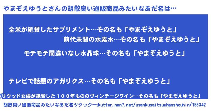 | 恥ずかしいあだ名 | 『プリティーやまぞえゆうと』『やまちん』 |