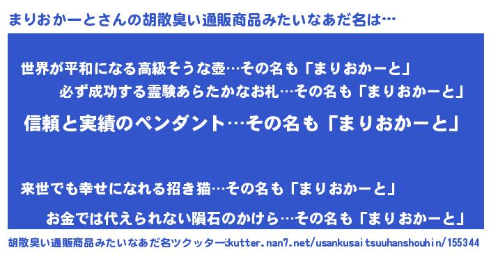 | 意味不明あだ名 | 『とにかく怪しいまりおかーと』 |