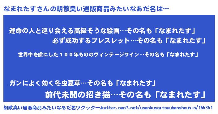 | 意味不明あだ名 | 『住所不定無職なまれたす(8歳)』 |